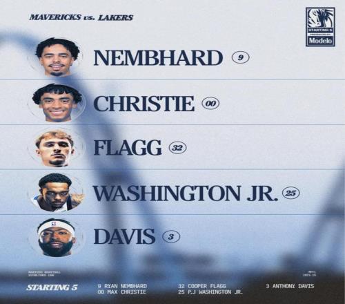目前独行侠5胜14负,仅排西部倒数第二。湖人主场的NBA杯专用地板出现问题,只能换回常规地板。湖人本场首发:东契奇、里夫斯、詹姆斯、八村塁、艾顿。独行侠首发:瑞安-内姆哈德、克里斯蒂、弗拉格、PJ-华盛顿、浓眉。