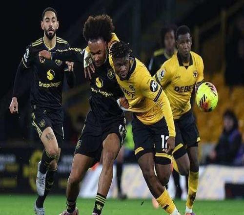 北京时间12月9日,英超第15轮继续进行,曼联作客莫利诺克斯球场挑战狼队。上半场,库尼亚助攻B费破门,贝勒加德扳平比分。比赛中。图片来源:视觉中国下半场,达洛特助攻姆伯莫破门,B费