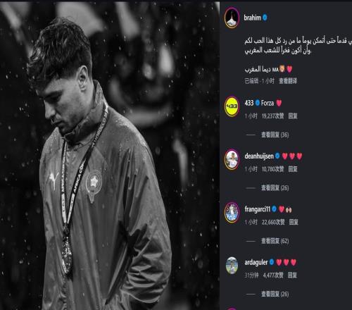 非洲杯决赛罚失关键点球后,卜拉欣-迪亚斯在社交媒体公开道歉,表示承担全部责任。多位皇马队友在其评论区留言